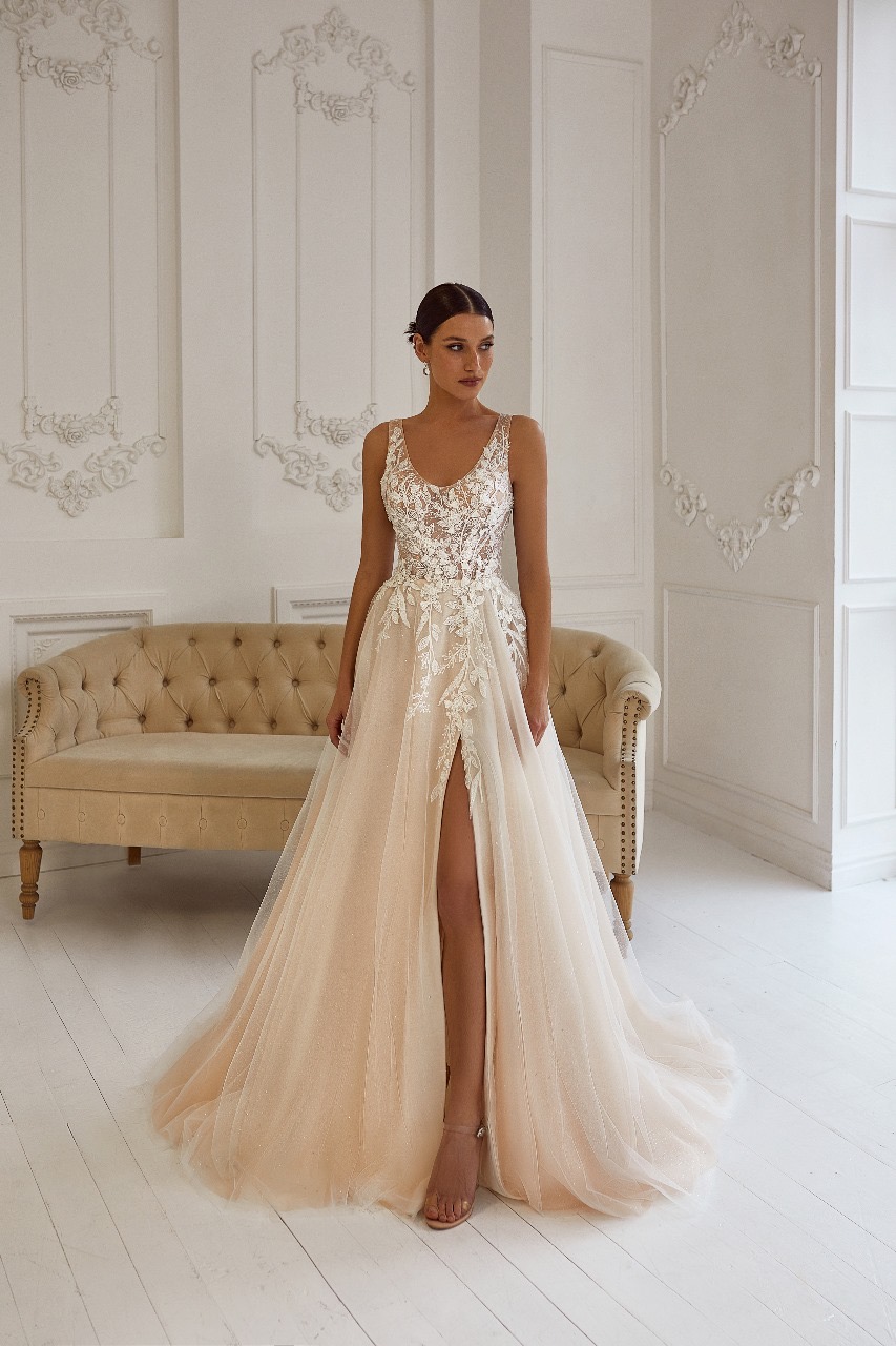 La jupe en tulle fluide se déploie avec légèreté et crée un mouvement aérien à chacun de vos pas. La fente subtile apporte modernité et sensualité tout en conservant l’élégance propre aux robes de mariée couture. Cette robe est idéale pour les mariées qui souhaitent allier romantisme, modernité et confort le jour de leur mariage.